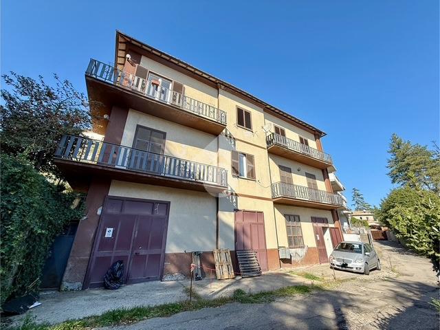 MONTEFIASCONE al centro del paese, proponiamo in vendita appartamento al piano primo con giardino privato di circa 100 Mq e garage con magazzino di circa 50 Mq.