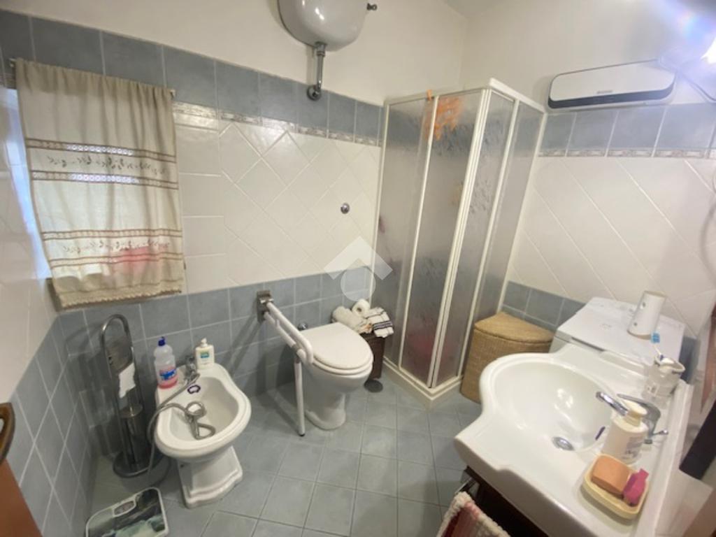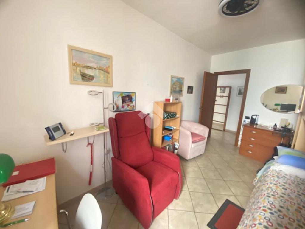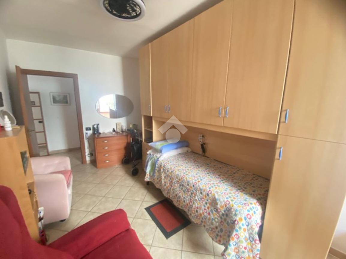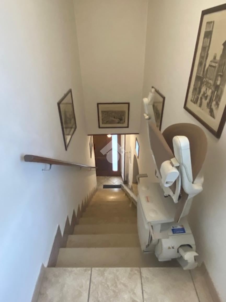 disimpegno, cucina abitabile con camino, soggiorno con splendido affaccio panoramico su Viterbo, due camere da letto, bagno con box doccia e comodo ripostiglio.