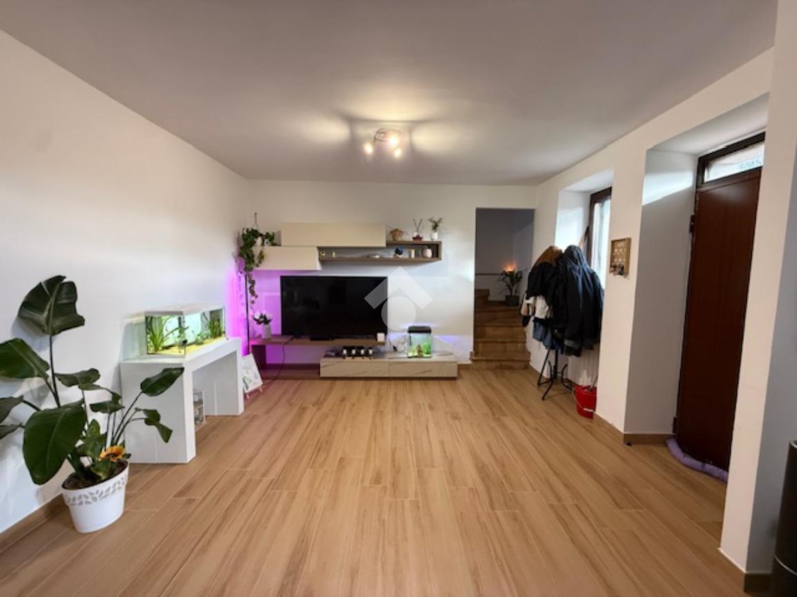 Al piano terra l’abitazione accoglie con un ampio e luminoso soggiorno, cucina con angolo cottura e camino e bagno finestrato dotato di box doccia.
